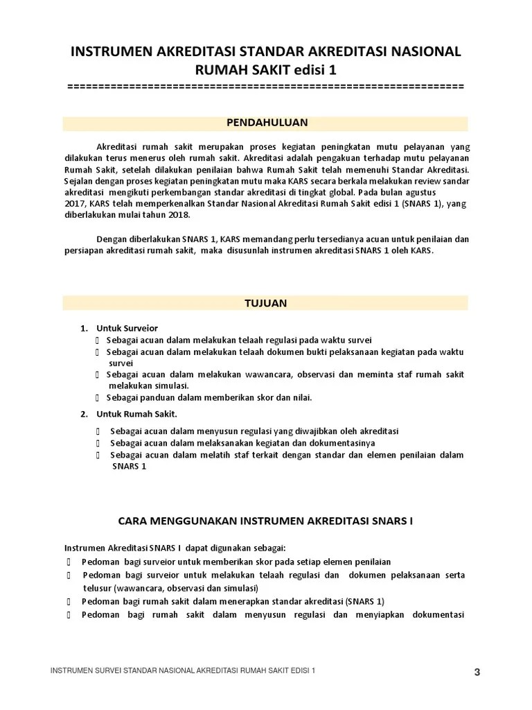 Instrumen akreditasi selanjutnya disebut instrumen adalah alat ukur yang dipakai oleh lembaga independen penyelenggara akreditasi untuk . Hal ini dilakukan sejalan dengan visi kars untuk menjadi badan . Dilakukan dengan mengacu pada standar nasional akreditasi rumah sakit (snars) edisi 1.1 terdiri dari 16 bab : Rs akreditasi internasional · rs akreditasi nasional. Dalam rangka meningkatkan mutu pelayanan di rs, saat ini pemerintah telah memperbaiki dan menyempurnakan sistem akreditasi rs di indonesia.